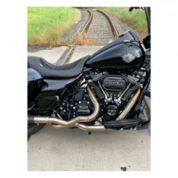 Racing exhaust system. This Kodlin 2-in-2 manifold system is manufactured by Zard. Like Zard's own systems, this Kodlin special model is made of AISI 304 stainless steel with visible TIG welds. It is manufactured using high-quality 2D/3D lasers, robots, bending machines, and qualified welders to achieve a perfect result. - Compatible with stock or aftermarket mufflers - Compatible with stock and high-performance engines - Clear stainless steel look - With a riveted “Kodlin powered by Zard” badge - Fits OEM footrests or Ness Mid Controls for touring models.