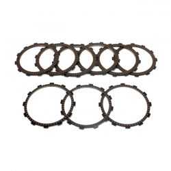 Friction plate set only. Specifically developed to handle the power and torque of High-Performance H-D M8 engines. This clutch set includes 'G3' friction plates (which incl. 6 friction plates and 3 jutter plates). G3 is a newly developed friction material that offers as good or better performance than the Alto Carbonite clutch material. It is formulated with graphitic carbon-based particles which is the most durable, consistent with improved shifting and reduced burn-out product to date for high horsepower and torque applications. In short, this is an excellent clutch plate set for stock to very high performance engines and a direct replacement for the OEM clutch plate set. Incl. 6 x 581908 friction (1.50" /3.81mm thick) & 3 x 581909 friction jutter (0.151"/3.84mm thick) plates. Note: Compatible with OEM components and friction discs. A matching 'Performance Steel' Alto steel drive plate set can be ordered separately as fmc-581-911.