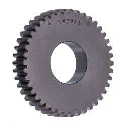 Green, stock size. Crimp-on installation on the camshaft. Used to correct backlash (free play) between the cam gear (on the cam) and the pinion gear (the smaller drive gear). Too much backlash will result in clicking, not enough backlash will result in a 'whining' sound. To correct backlash you can either use smaller or larger pinion gears or smaller or larger Andrews cam gears. Note: See fmc-503-768 (.108") and fmc-503-769 (.105") cam gauge pins to measure cam gears and pinion gears. Note: To determin if you need a 70-E77 or a L77-84 model Shovel cam gear? Measure the outer diameter of the cam gear on the camshaft that is to be replaced. The 70-E77 cam will measure approx. 70mm. The L77-84 cam will measure approx. 69mm.