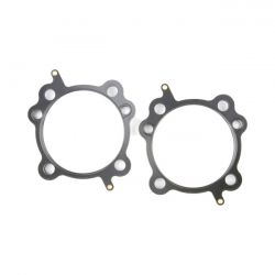 .040" thick MLS (Multi Layer Steel). Consists of a top and bottom layer of embossed stainless steel with both side coated with 250°C high temperature polymer rubber layer. The inner ring(s) are also stainless steel. The gasket layers are rivited together, outside the gasket surface, for ease of installation. The outer layers are embossed and both sides coated with a 250°C resitant polymer rubber layer. MLS head gaskets eliminate the use of dowel pin o-rings.