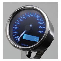 Electronically steppen motor driven, waterproof speedometer. 60mm diameter polished stainless housing with V-bracket. ECE approved and LED background lighting, speedo/voltage/ODO/trip/clock. Can be connected to the bike's digital output signal. If there is no digital output available, it is recommend to order sensor 900404 separately. Dimensions: 60mm OD and 48mm high. Includes bracket & wiring. - Polished stainless housing - Blue LED illumination. Note: With approval. Check your local MCS dealer or the MCS sales department for exact type of approval and validity on bike model and years on the test report.