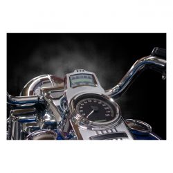 Chrome plated billet aluminum. Attaches with 3M adhesive tape in seconds, to the front side of the dash cover that holds the speedo. Totally blends with the OEM speedo/dash cover design, offering more information then ever. Mega bright LED shift lights, a tachometer, battery voltage, engine temperature, extra turn signal and high-beam indicator lights. Engine temperature is measured with the included copper ring terminal thermistor sensor, which attaches to the front 3/8" engine mount bolt. The Micro Display includes a wiring harness to connect to stock harness. Approximate dimensions: 109x100x25mm. **Dynojet product not available to purchase by Dealers located in the UK**