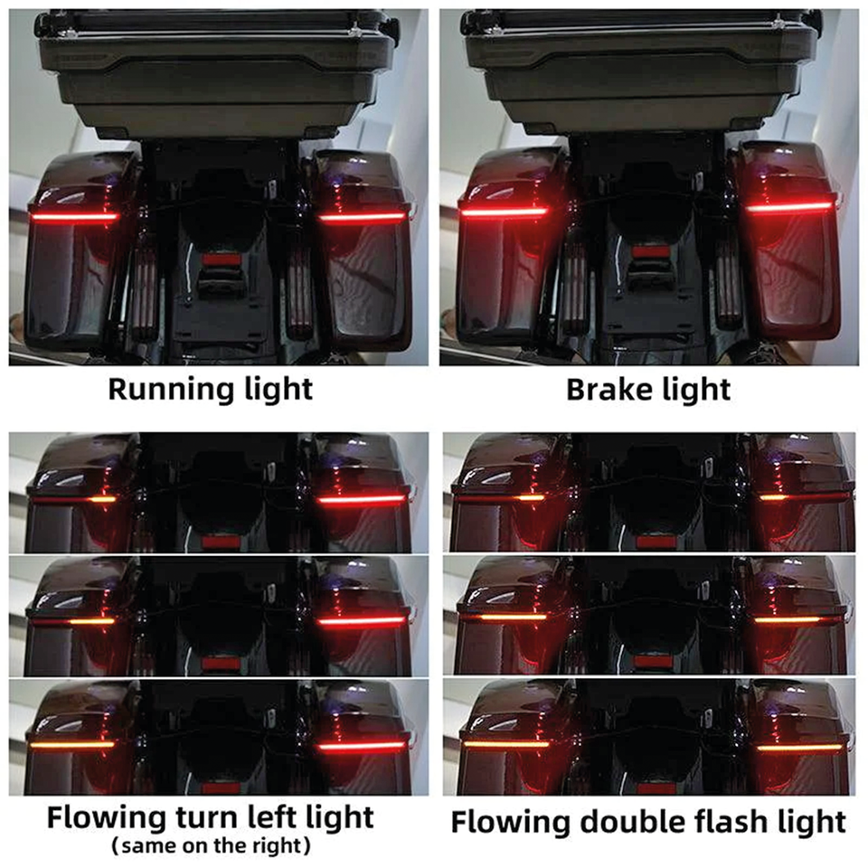 Add a flood of light to the rear of your bike with these auxiliary lights. They feature amber leds for the sequential turn signals and running lights and red leds for the tail- and brake light functions. Easy to install as these lights feature durable 3M glue pads and have the wiring with connectors installed. Sold in sets for left and right. Not suitable for U.S. Domestic models (VIN starting with 1HD).