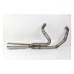 Euro 4 and Euro 5 homologated Kodlin 2-in-1 system from Zard. Only the exhaust flanges are mounted on the heads. The manifolds are pressed into the exhaust flanges and secured with springs, as are the silencers. Enables super-easy and quick removal of the exhaust for maintenance work on the engine or transmission. Like Zard's own systems, this Kodlin special model is made of AISI 304 stainless steel with visible MIG welds. Manufactured with high-quality 2D/3D lasers, robots, bending machines, and qualified welders for a perfect result. With a smooth stainless steel surface and a powerful sound. - Compatible with standard and high-performance engines - Clear stainless steel surface - With a riveted “Kodlin powered by Zard” badge - 3 lambda sensor connections (2 large ones for broadband sensors for tuning, incl. adapters for OEM sensors) Note: This is an EU-approved slip-on exhaust system. Removing or modifying the dB killer on approved mufflers will void the warranty and approval. The certification applies to unmodified production motorcycles of the models and model years specified in the product descriptions (Directive 97/24/EC, EU Regulation 134/2014). The approval number indicated on the certificate supplied is stamped on the silencer and must be presented to law enforcement authorities during inspections.