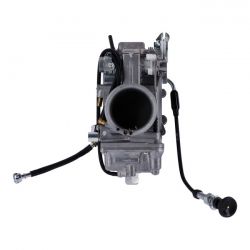 The racing carburetor for monster motors. The Mikuni HSR48 delivers the highest airflow with accurate fuel metering for more power and precise throttle control. An extended main jet and larger needle valve assembly ensures maximum fuel flow to powerful engines. Intended for use by experienced builders. Includes carburetor and manifold adapter rubber.