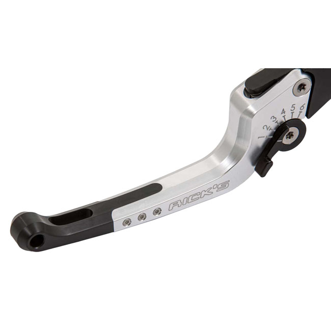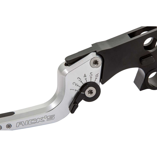 Black / Silver anodized. CNC machined from billet aluminum bar, with a durable anodized finish. This is a precision engineered lightweight but strong on the fly 6-step adjustable brake and clutch lever kit. The 6-step adjustment allows you to dial in the clutch and brake lever for maximum control and best ergonomics. The lever design comes with bolt-on lever ends of which two lengths are included, allowing bolt-on your preferred lever end length to further fine tune the levers to your taste. Note: With approval.