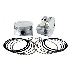Replacement forged piston set. Fits all 100" and 107" 4" bore Super Sidewinder engines. Will also fit the special (out of production) 100" Evo type retro-fit engine for Shovel chassis, which is equipped with small diameter flywheels. Incl. pistons, wrist pins, wristpin clips and piston rings. Note: In any and all applications the technician must be able to judge components for their suitability in combination with the other engine components, prior to installation. It is of importance that a knowledgeable mechanic will install & make adjustments as required. The rider must follow standard break-in and riding procedures for overhauled engines.