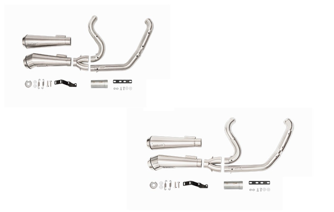 You know how it is: you build a really great race bagger, with all the best features, extended fender and streaming bags, lowered suspension, etc. – and then you can't find a matching exhaust system to top it all off. That's now a thing of the past, because the “FIGHTER” is here. This really cool system with large cross-sections and a large 4" muffler ends in a massive angled end cap, so it fits perfectly with the design and blows past the panniers. The sound is perfect – not too loud, not too quiet.