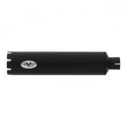 E5-approved slip-on exhaust silencer set made from precision-machined stainless steel. With black chrome-plated finish. Diameter 114 mm. With “revolver” end caps made from Ergal (aluminum 7075) for a style that matches your motorcycle. Complete with catalytic converter and removable dB killer. Note: Homologation applies only to standard engines of the models and model years specified in the product descriptions. Removal or modification of the standard dB killer will void the homologation.